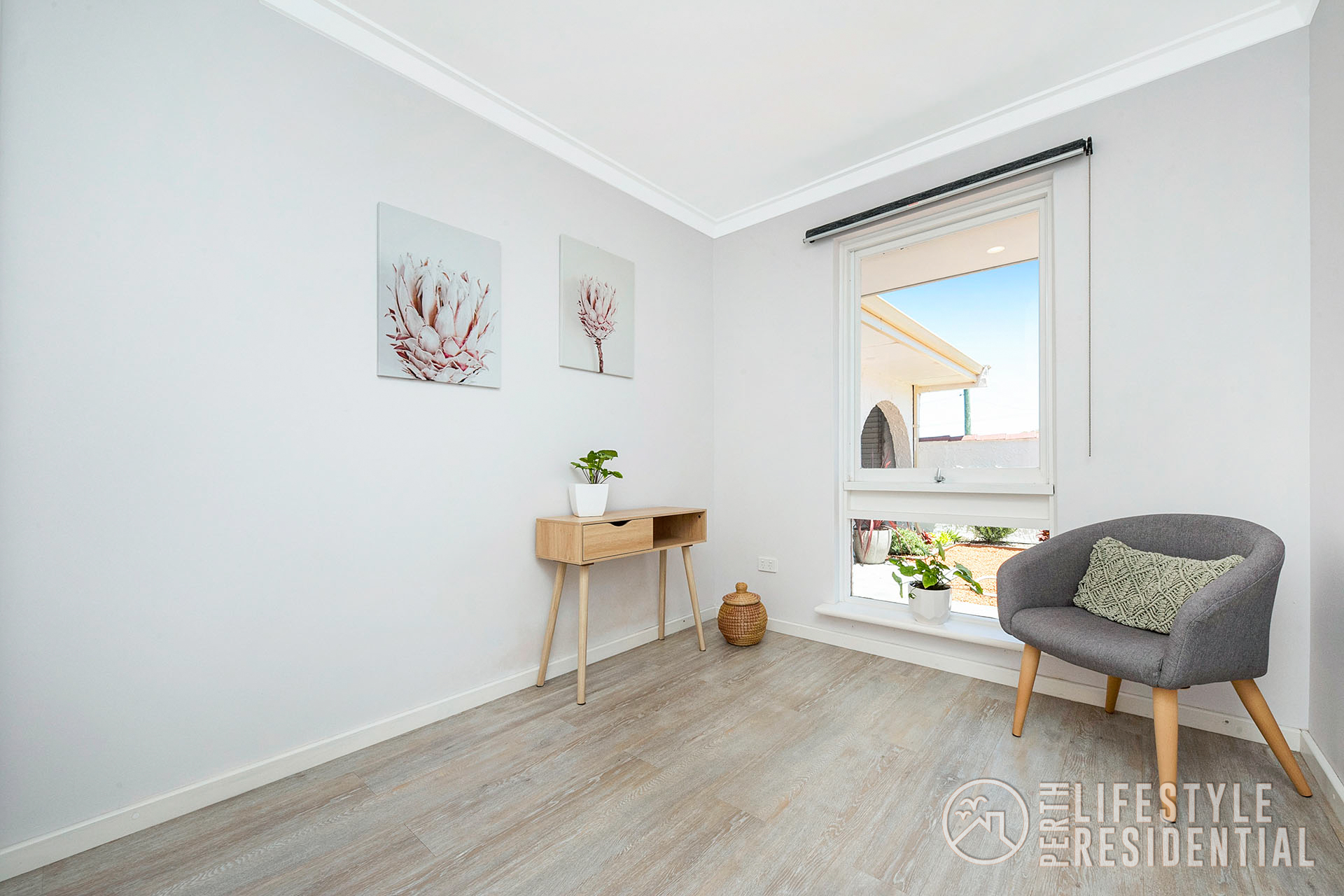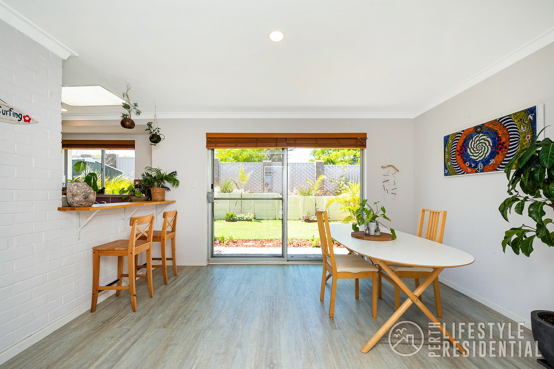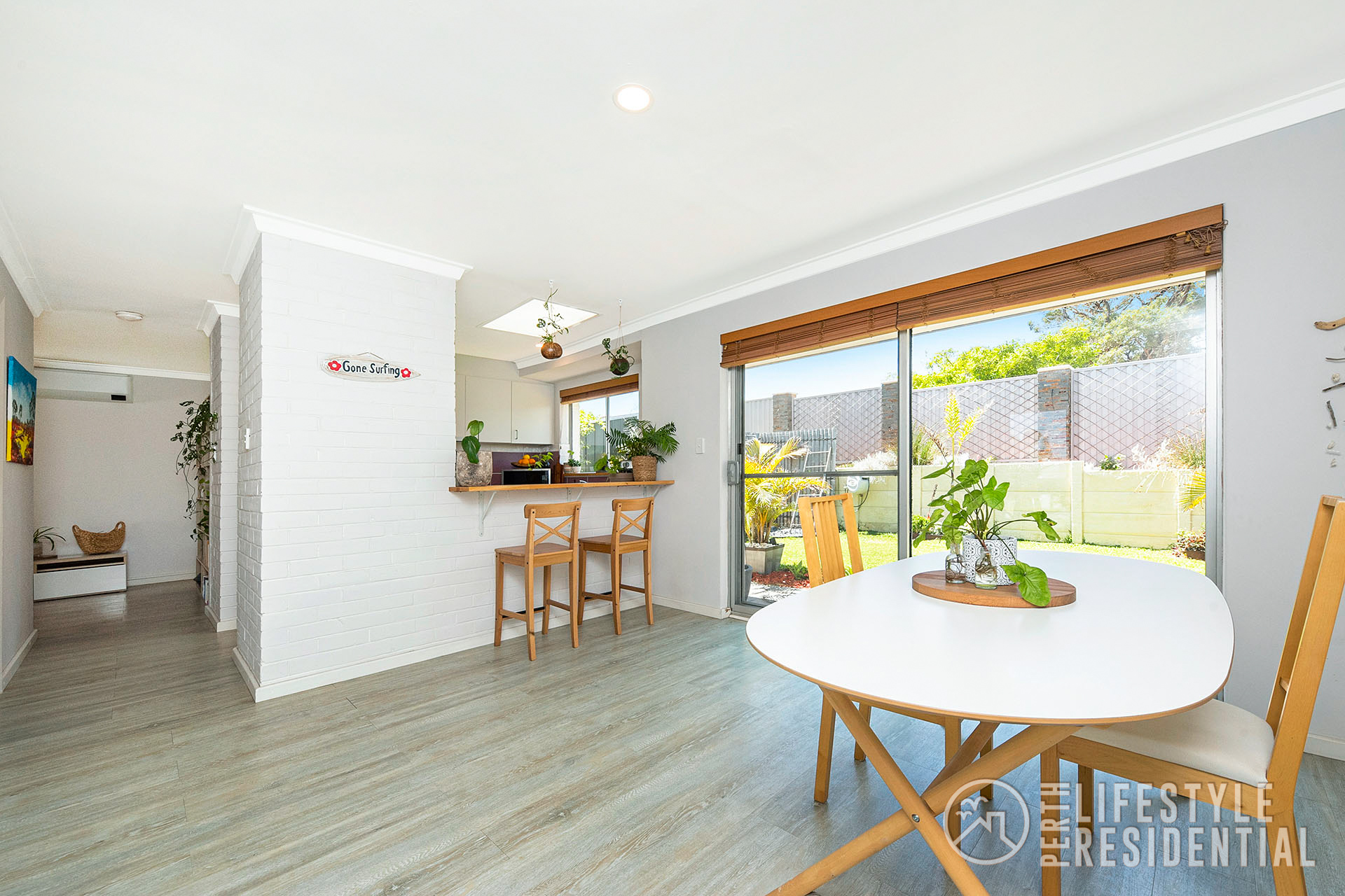 The existing double brick and tile home has lots of spacious accommodation of 4 bedrooms all with robes, two bathrooms including ensuite to master bedroom with walk through robe, all neutrally decorated with lots of natural light flowing into the home. The informal meals area has full length sliding glass doors to the rear garden. A front facing air-conditioned lounge with recently installed double glazing windows and feature wooden wall overlooks the front lawn area with its ocean aspects. A separate study area is cleverly partitioned off at the opposite end of the lounge. New vinyl timber look alike flooring throughout the home.