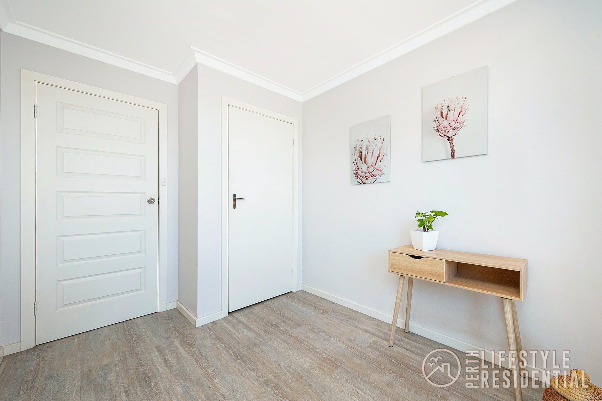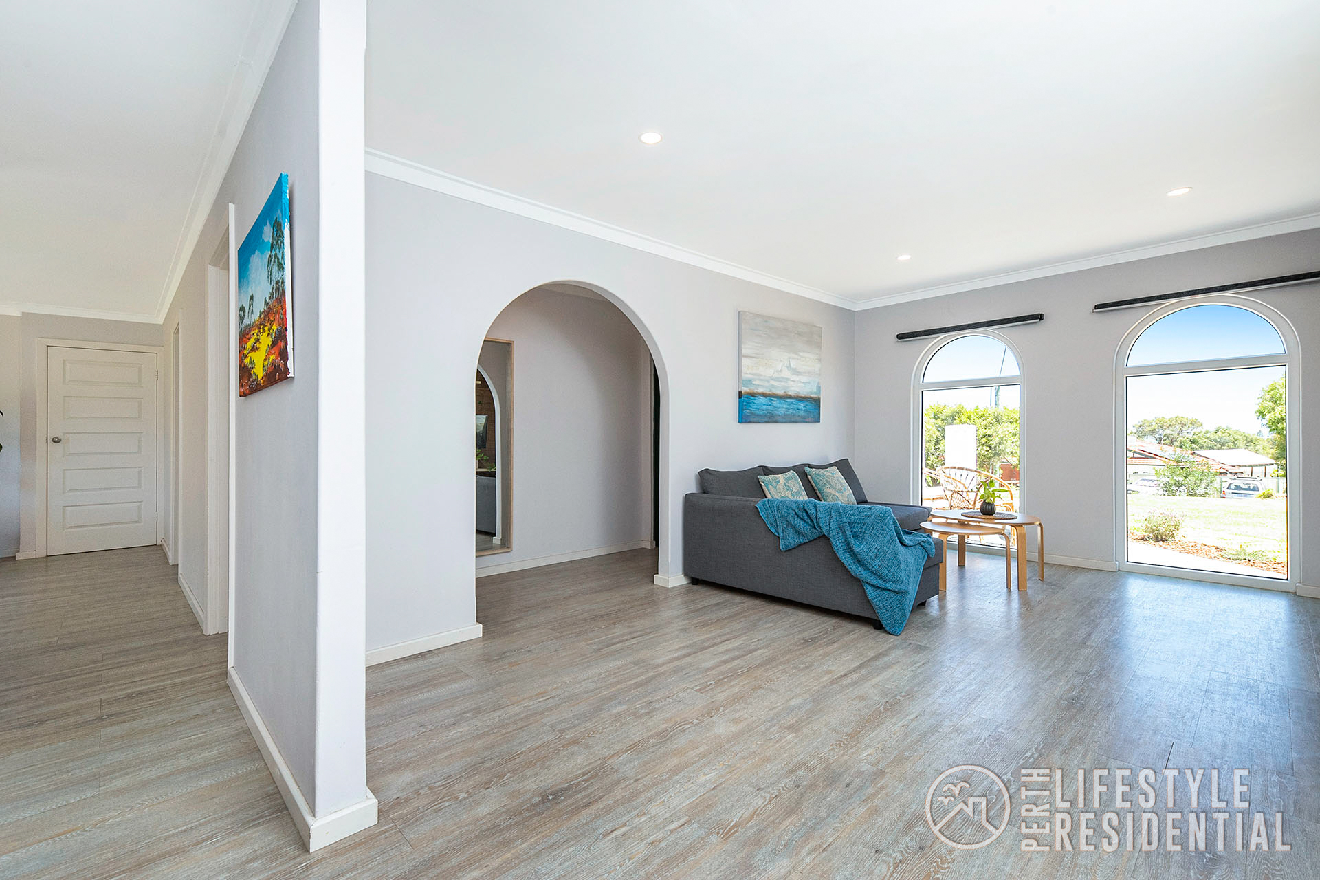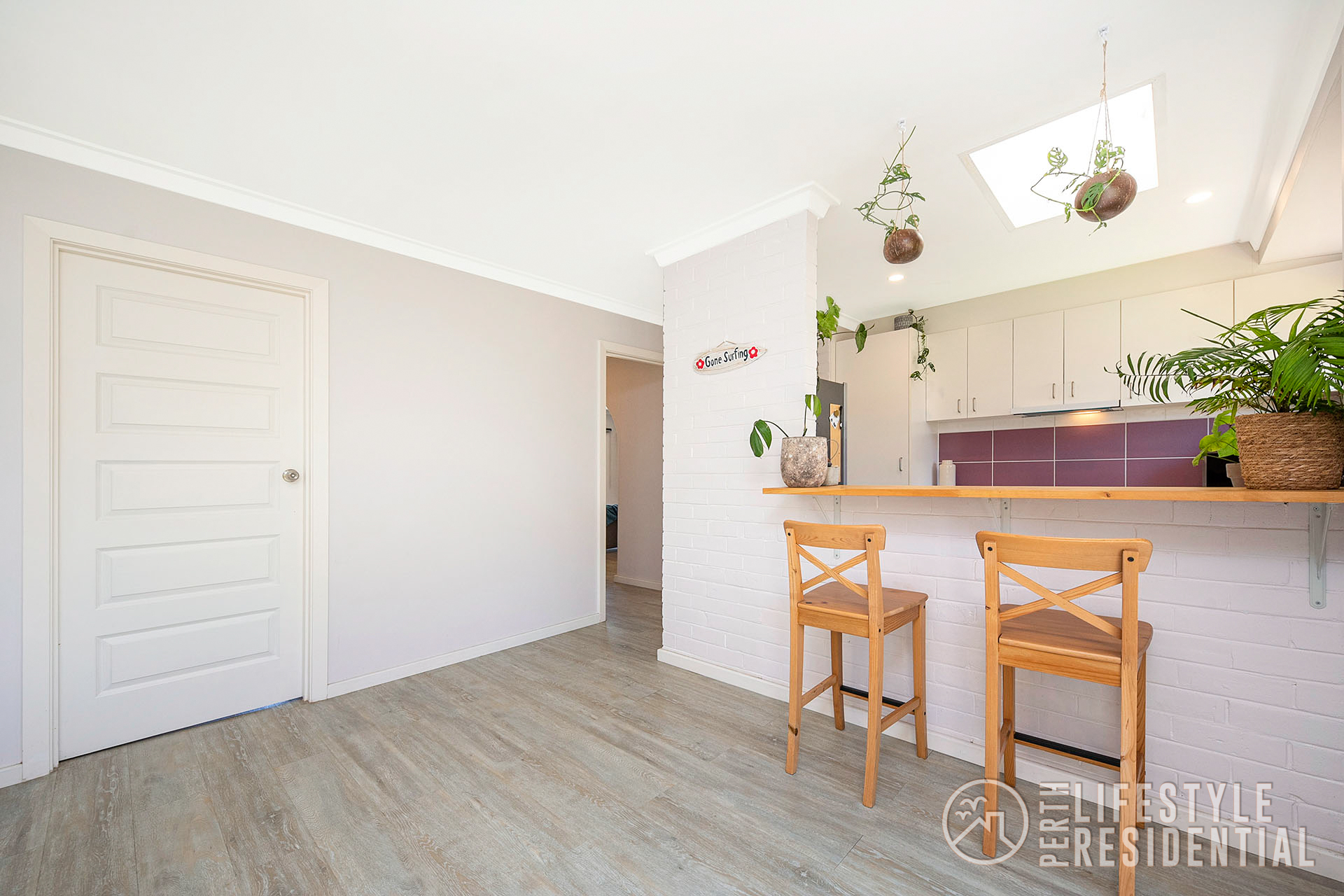 The existing double brick and tile home has lots of spacious accommodation of 4 bedrooms all with robes, two bathrooms including ensuite to master bedroom with walk through robe, all neutrally decorated with lots of natural light flowing into the home. The informal meals area has full length sliding glass doors to the rear garden. A front facing air-conditioned lounge with recently installed double glazing windows and feature wooden wall overlooks the front lawn area with its ocean aspects. A separate study area is cleverly partitioned off at the opposite end of the lounge. New vinyl timber look alike flooring throughout the home.