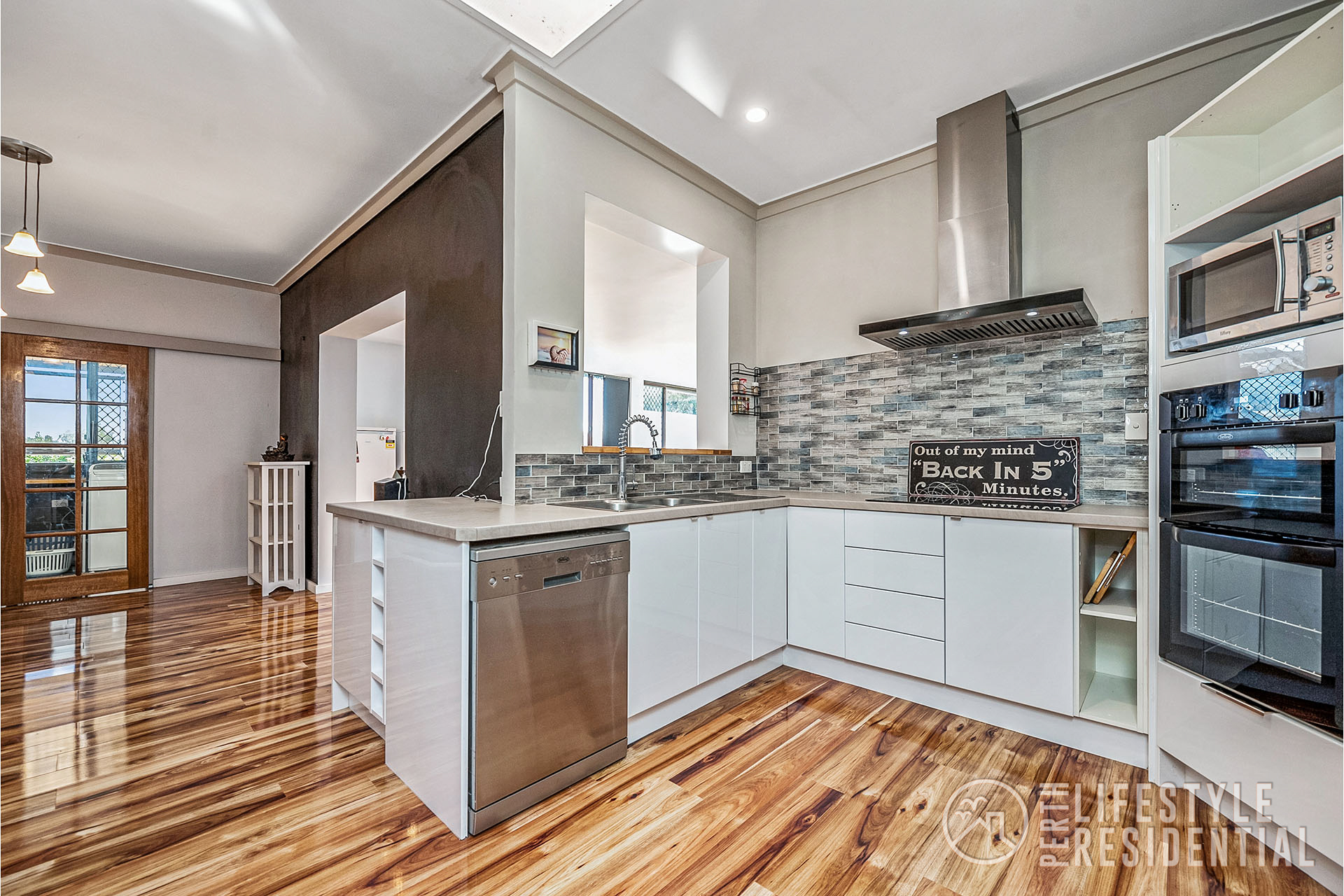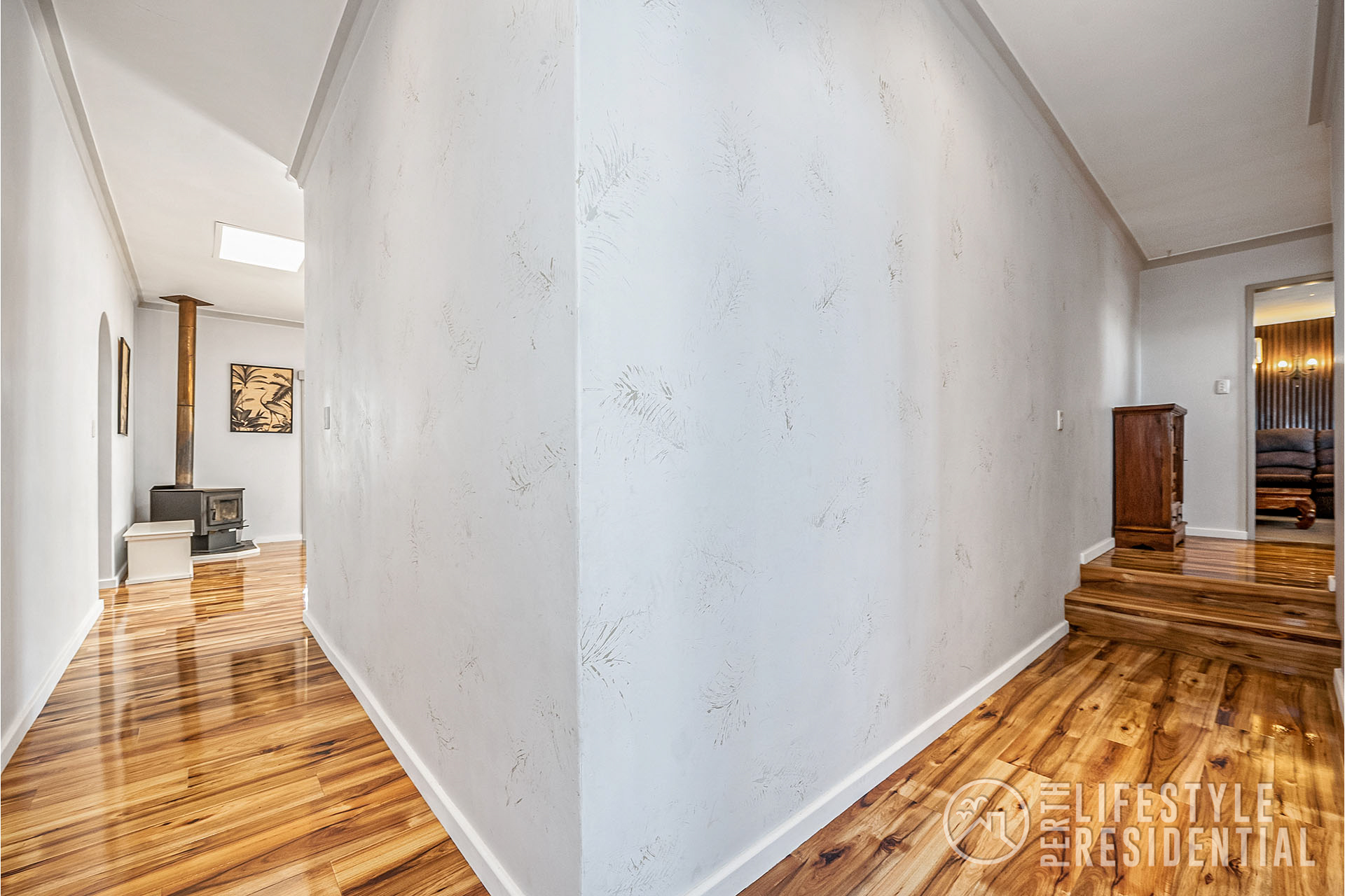 Stunning glossy floors flowing from the entry right through to the kitchen, family and dining areas.