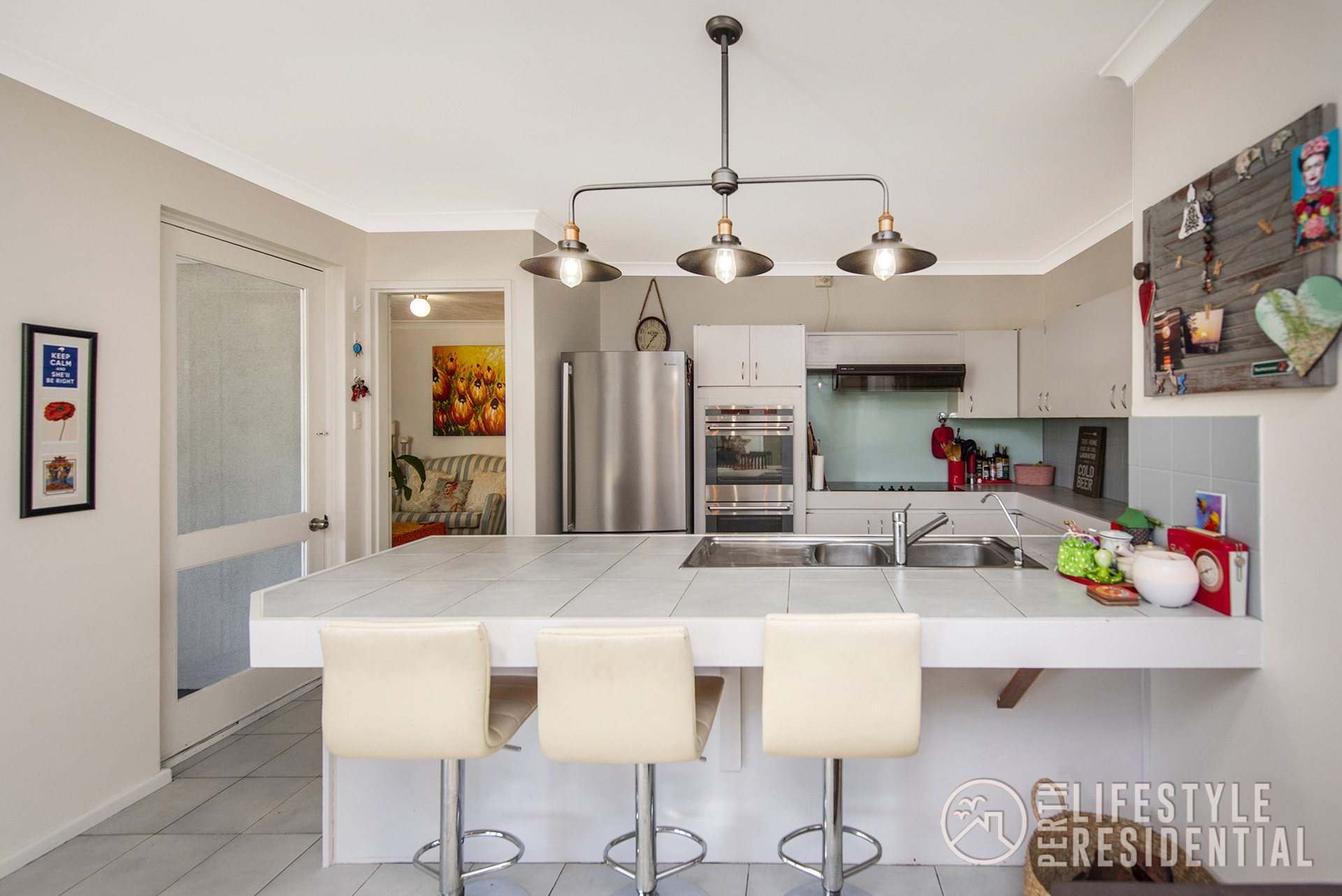 A fabulous kitchen with 900mm electric cooktop and rangehood, 600mm oven and separate grill, 1.5 sink with water filter tap, lots of cabinetry, room for a big fridge and wide breakfast bar all overlooking the meals area with a further two bedrooms both with built in robes.