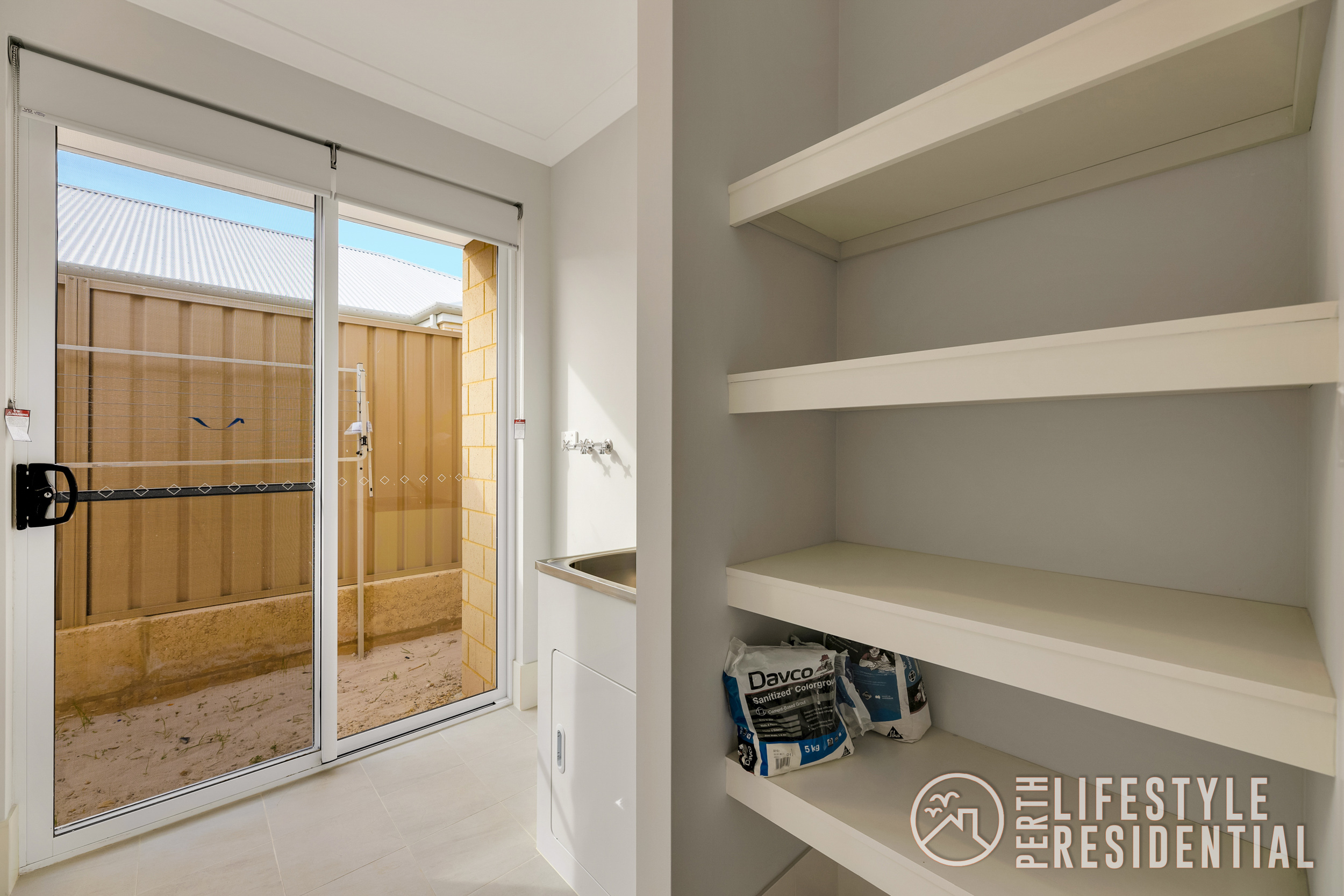 • Separate laundry with built in shelving