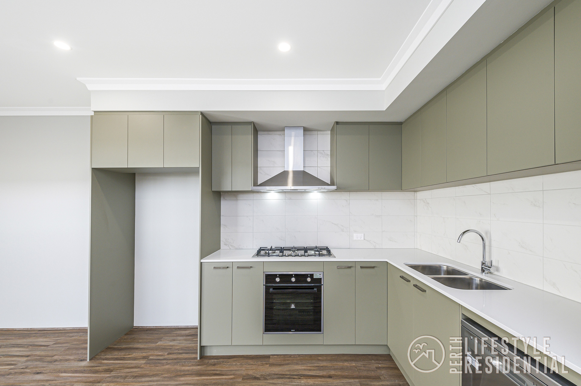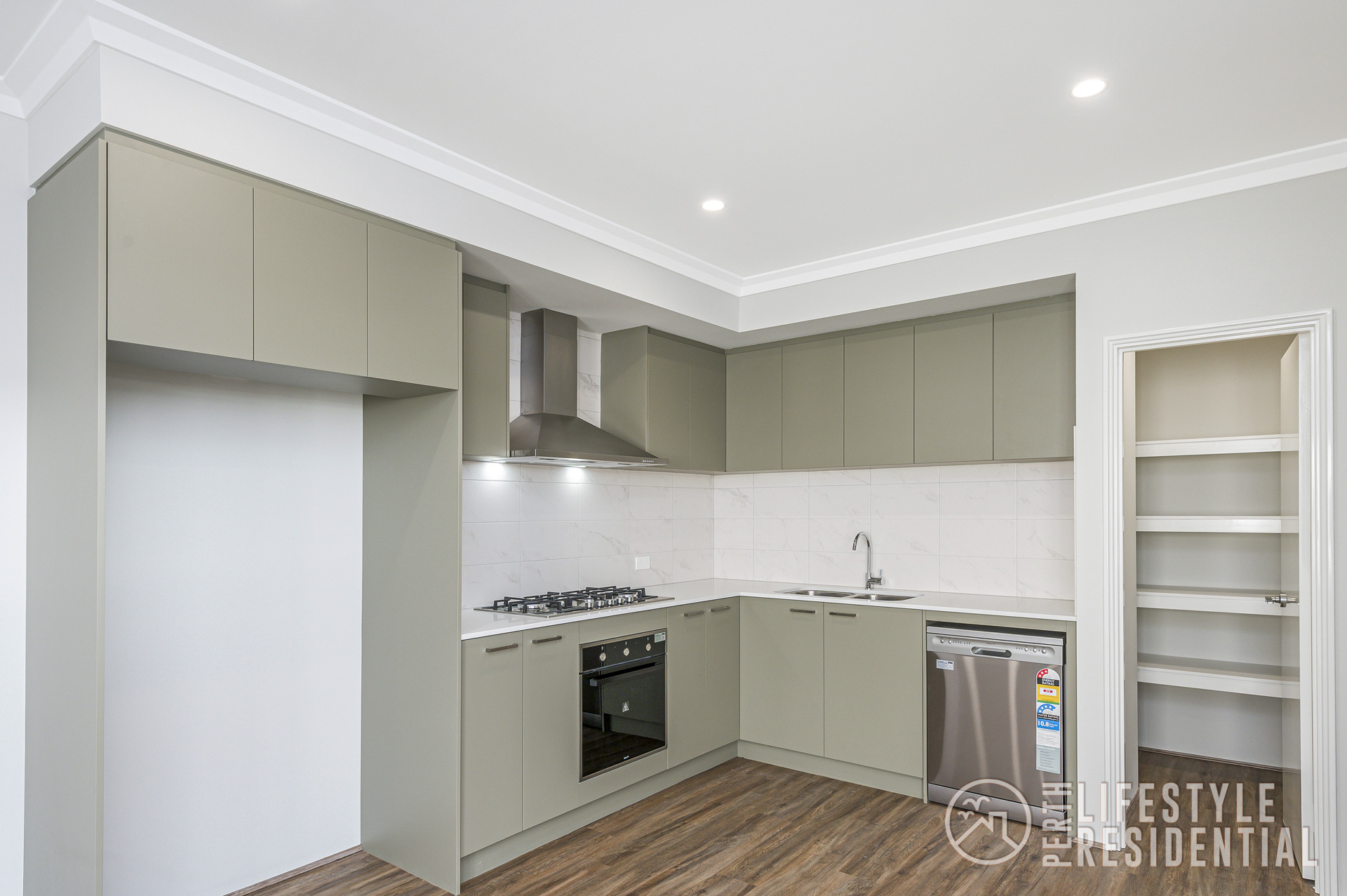 • Kitchen with stone benchtops, dishwasher, walk in pantry, gas hotplate, oven and rangehood