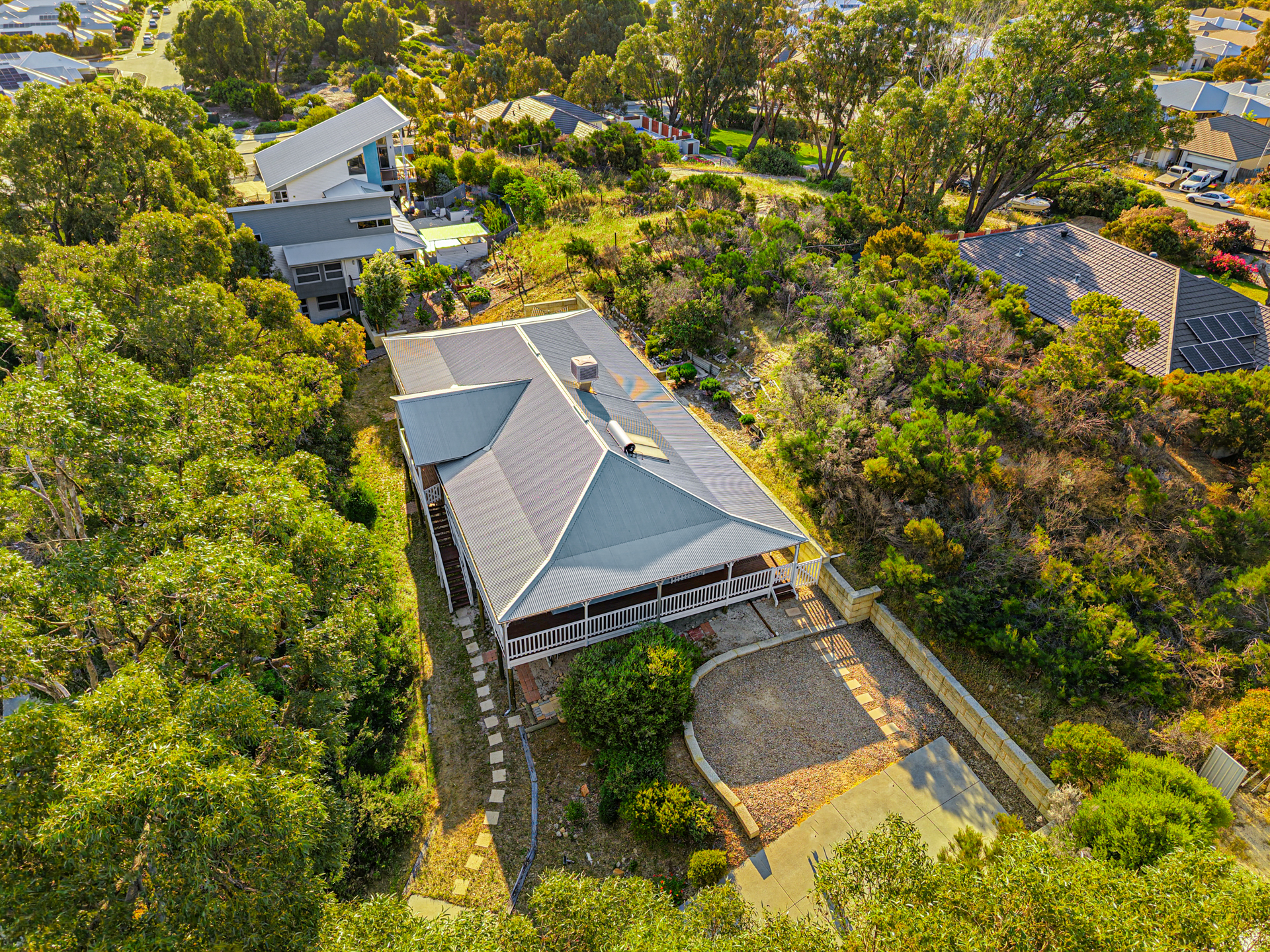 Set high among native trees and whispering bushland, this large Queenslander style home sits on an elevated 2166sqm block that feels like its own private hideaway. With sweeping outlooks, gentle breezes and the soundtrack of birds in the canopy, this is the kind of property that gives you space to breathe while still keeping you close to everything Yanchep has to offer.
